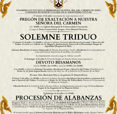 "Solemnes Cultos en Honor de Nª Sª del Carmen de Adra 2024"