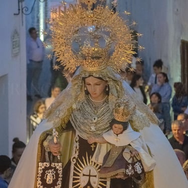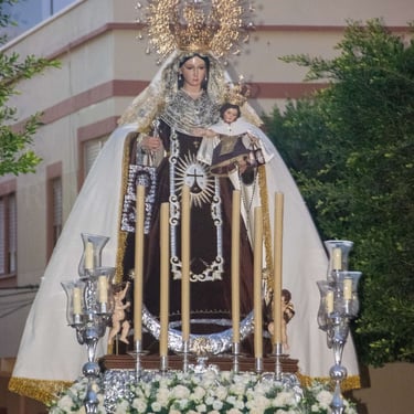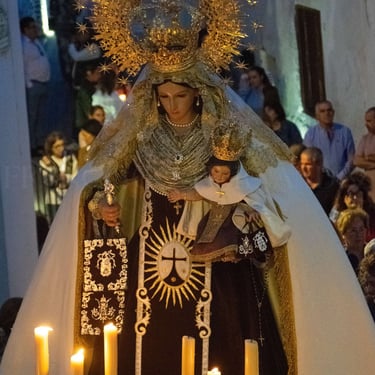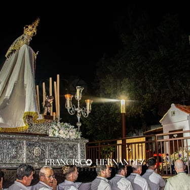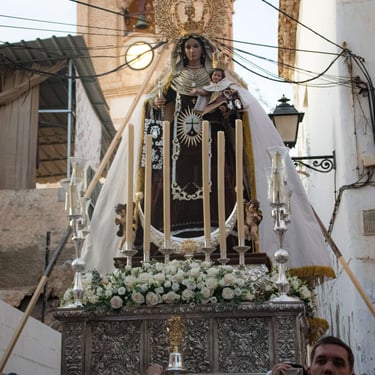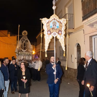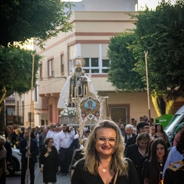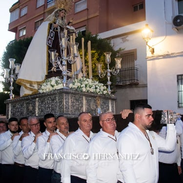 Presidiendo el cortejo, la Venerada Imagen de la Virgen del Carmen, portada en andas procesionales, recorrió bajo la luz de los cirios los rincones más emblemáticos de Adra, visitando las Ermitas dedicadas a las Ánimas Benditas, en un itinerario que evocó la tradición y la fe de generaciones enteras.
