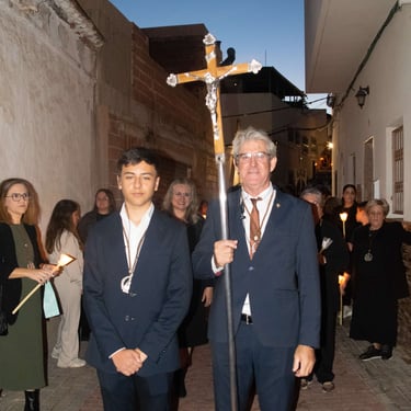 El pasado 1 de noviembre, la Hermandad de Nuestra Señora del Carmen de Adra celebró el Santo Rosario Vespertino de Ánimas y Fieles Difuntos, un acto cargado de espiritualidad y recogimiento que llenó de oración las calles más antiguas del Casco Histórico de la ciudad.