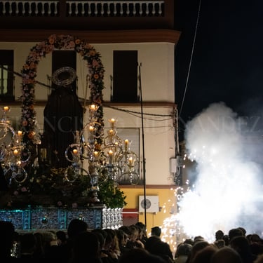 La noche del 17 de enero volvió a vestirse de tradición y sentimiento en Churriana (Málaga) con la salida procesional de San Antonio Abad, Excelso Patrón de la barriada, que recorrió las calles de su pueblo arropado por el fervor de sus vecinos.