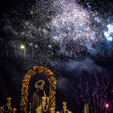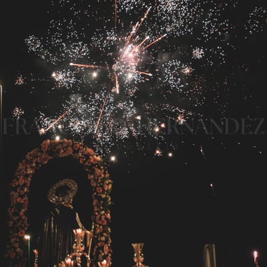 Entre el sonido inconfundible de la pólvora y el brillo de las ruedas de fuegos artificiales, la imagen del Santo avanzó marcando el pulso de una celebración profundamente arraigada en la identidad churrianera. Una noche en la que la devoción se hizo visible en cada gesto, en cada mirada y en cada cirio encendido.